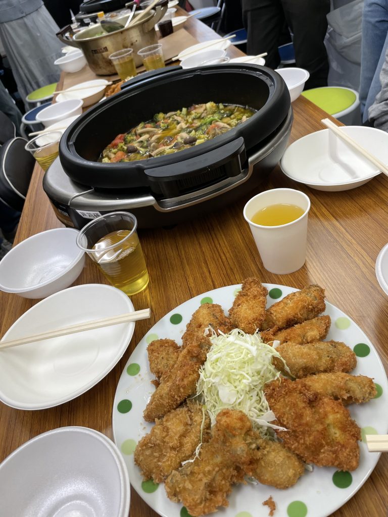 毎年定番のカキフライとアヒージョ、そして今年は初めての、牡蠣の旨味が感じられる具沢山スープ(フォー入り)を作りました。