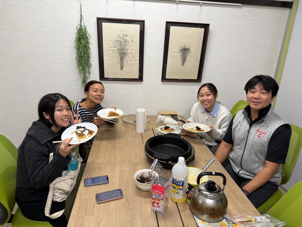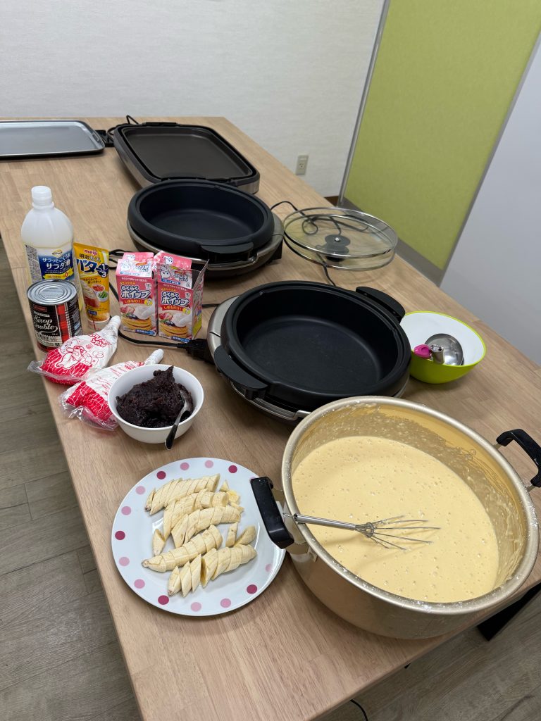 日本ではあまり見かけないビッグサイズで、どう使おうかと話していたところ、なんと急遽ホットケーキパーティが開催されることに 笑。