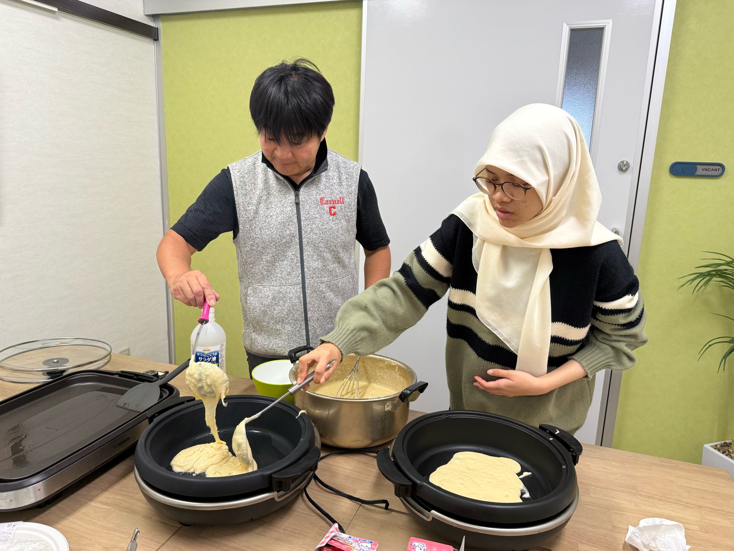 日本ではあまり見かけないビッグサイズで、どう使おうかと話していたところ、なんと急遽ホットケーキパーティが開催されることに 笑。