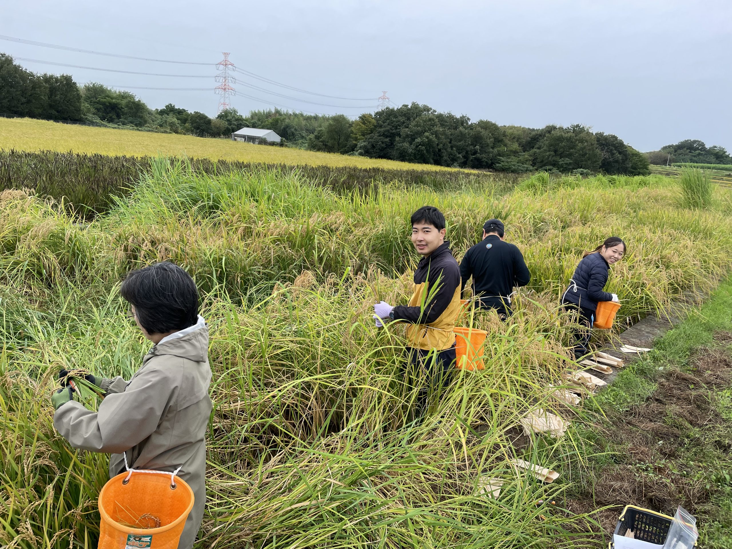 農場で育てているイネもすっかり登熟し、最近は各チームで収穫作業が進んでいます。