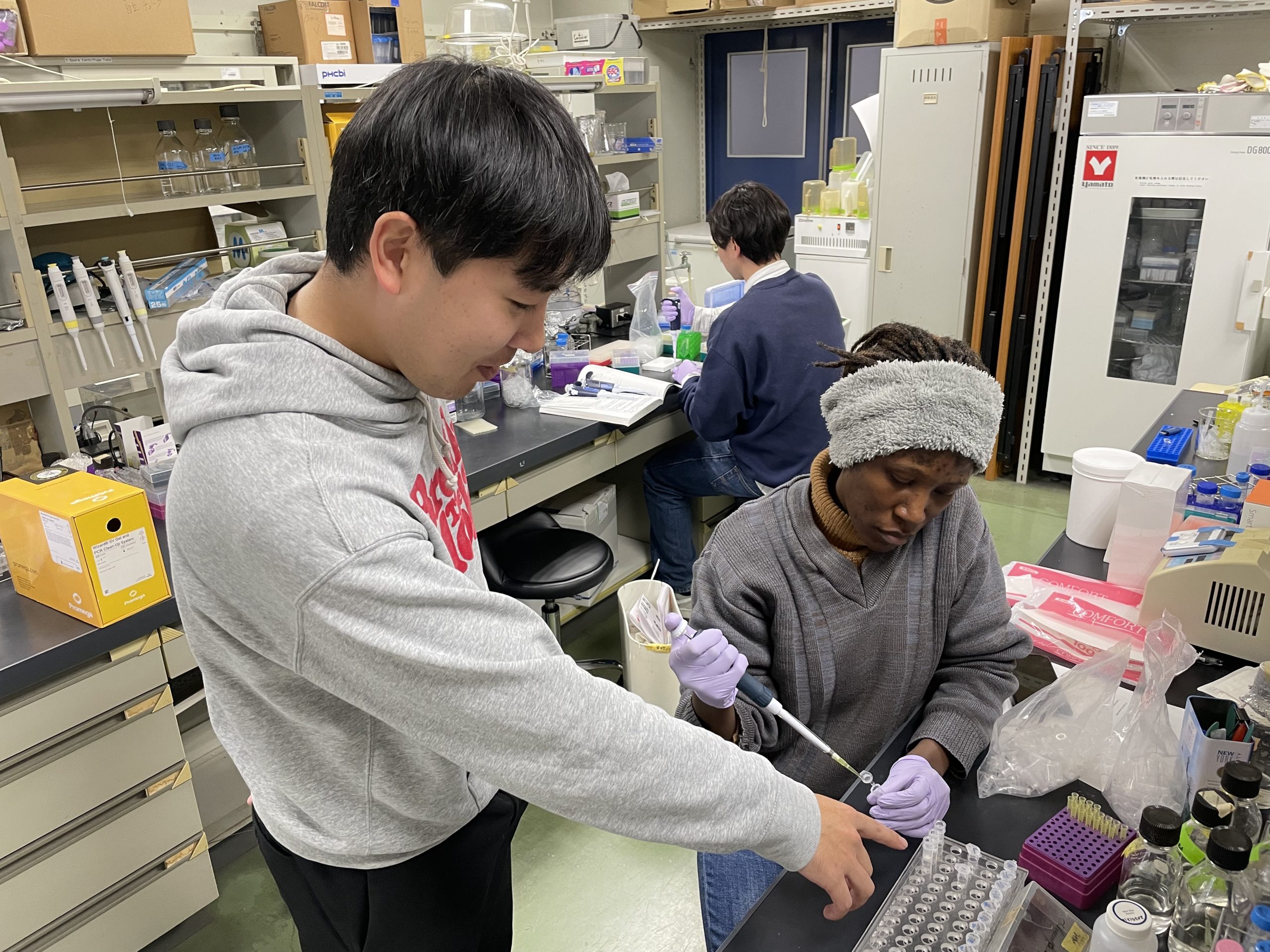現在私たちの研究室には、ウガンダからの留学生が実験をしに来られています。