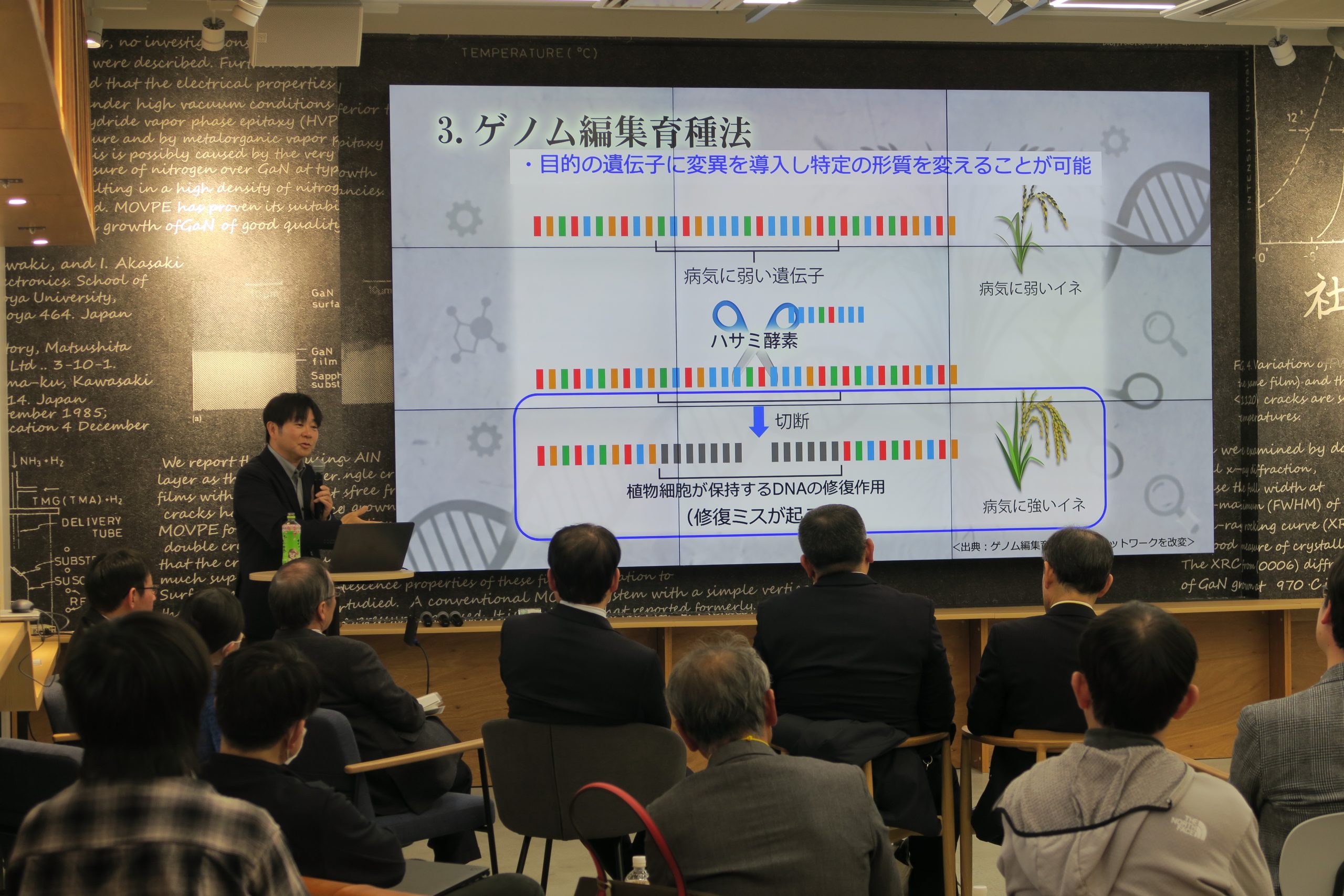 当日は、ゲノム編集を活用した新品種開発の最前線に加え、既存産業との共創によって生まれるアグリビジネスの新たな潮流、地域農業や食品産業への応用、さらには国際的な食料課題への貢献に向けた取り組みについて紹介されました。